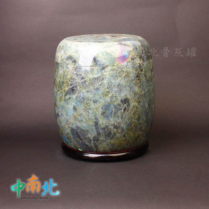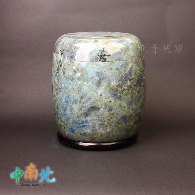 ▲骨灰罈為天然藍眼玉製作,每一只石紋與色澤皆為自然形成、獨一無二。
