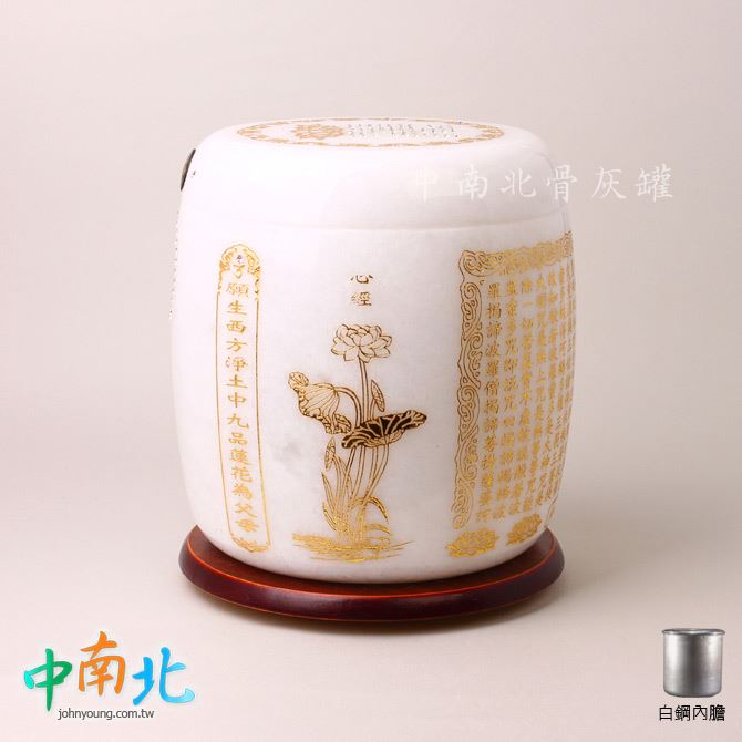 漢白玉心經白鋼防震骨灰罐